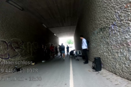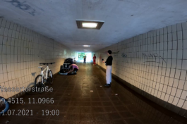 Sound as resonance frequency fills tubes that are made for humans. Tunnels and underbridges of the inner city of Nuremberg begin to pulsate. How it feels to be in a swelling body? The soundperformance letâs the air columns of our infrastructure s(w)ing like in a giant flute. While the sound is building up enveloping every body present a strange feeling of dissociation arises. The resonant frequencies create large standing waves which make sound physically perceptible as vibration in wave form while dissolving the contours of self perception.